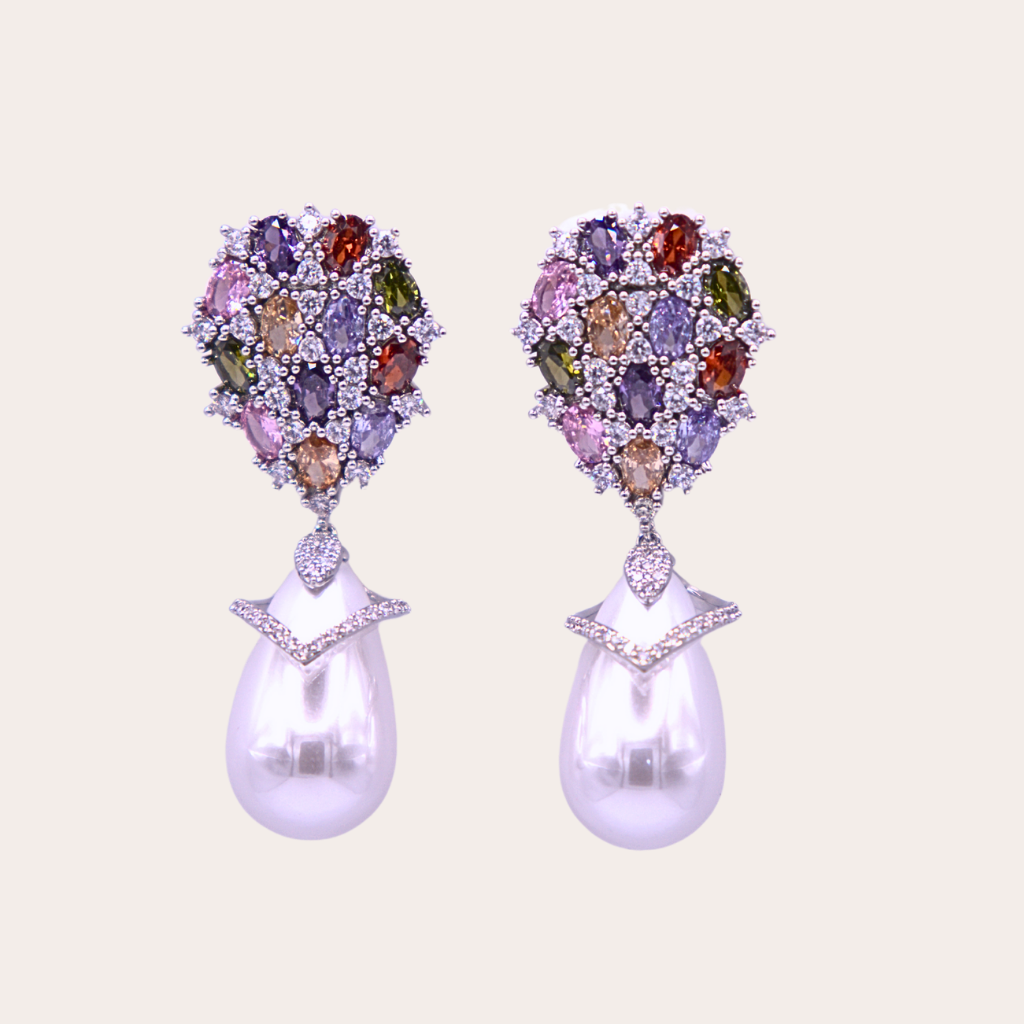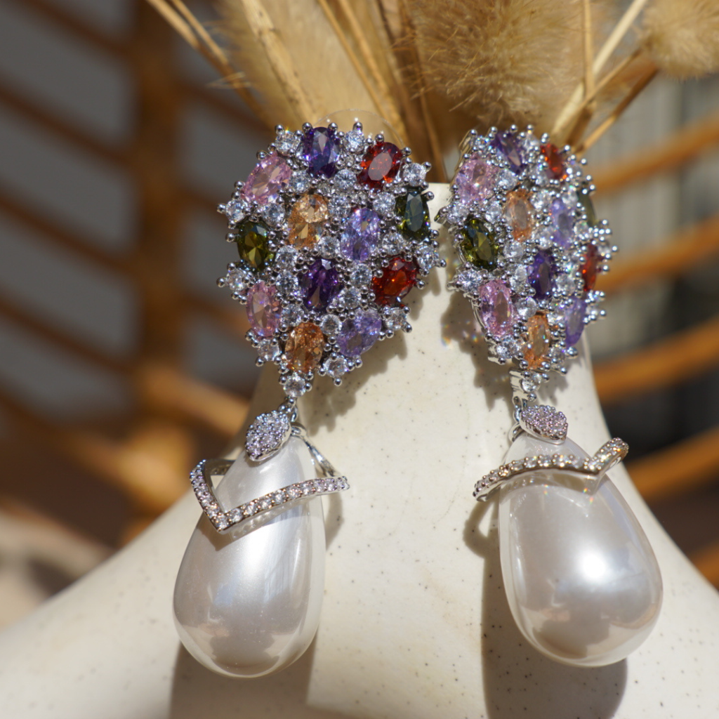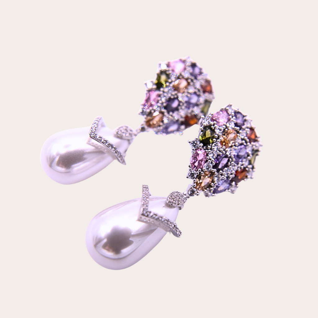Deze parel oorbellen bevatten kleine kristallen in kosmische tinten, afgewerkt met een stralende parel. Als een sterrenstelsel in beweging, combineren ze hemelse charme met tijdloze elegantie. Een echte statement piece die de magie van het kleurrijke universum vastlegt.