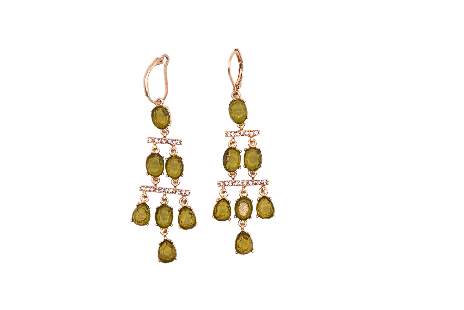 Gouden Oorbellen met Olijfgroene Kristallen