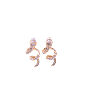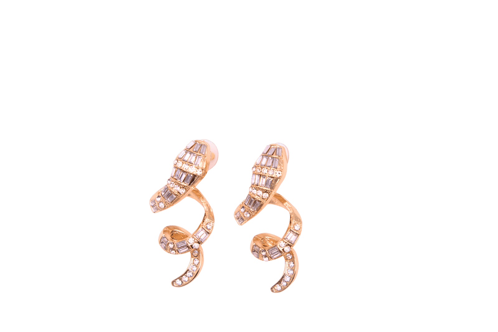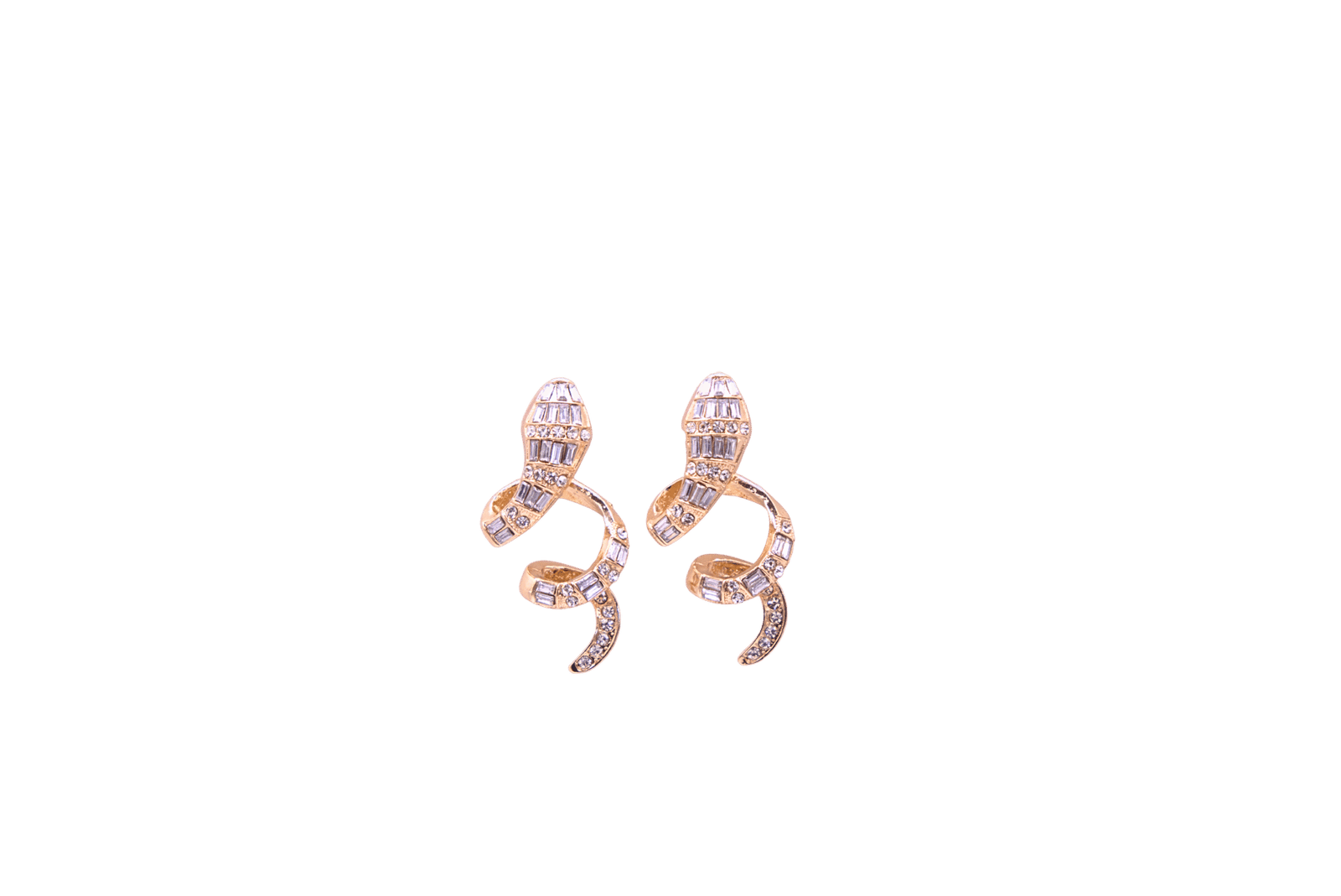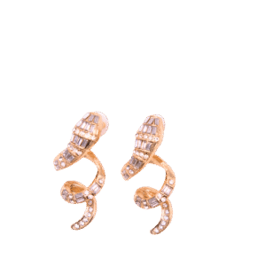 Bold and full of movement, these golden spiral earrings take the shape of a dazzling snake, coiled with confidence and covered in sparkling crystals. Radiating playful energy with every twist, they shimmer brightly — yet hold a hint of mystery in their serpent form. A striking balance of elegance, light, and untamed allure.