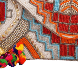 This statement clutch is fully encrusted with colorful beads and finished with playful fluffy pom-poms that add movement and fun. Equal parts festive and refined, it’s the perfect accessory for sunny gatherings, vacation dinners, or chic seaside soirées.