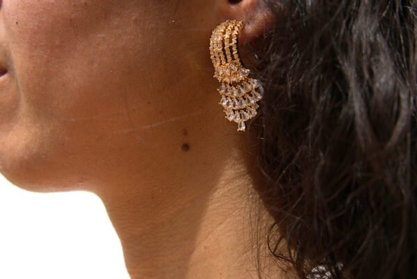 Glamorous rhinestone drop earrings in gold or silver. Perfect for parties, weddings, or making a bold statement.