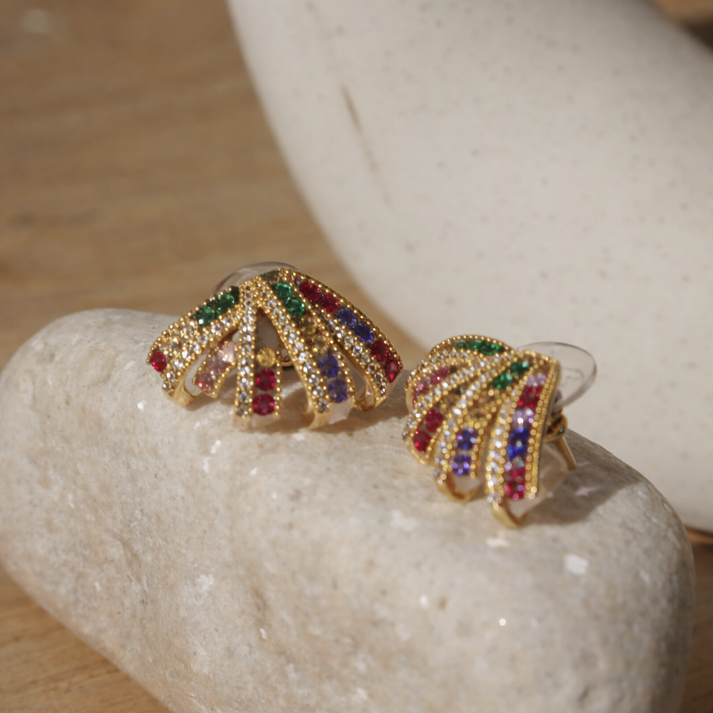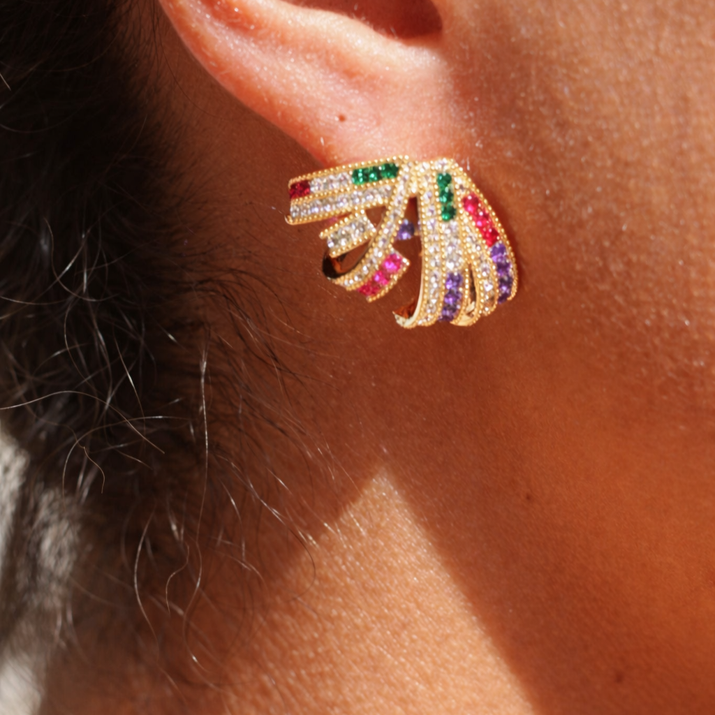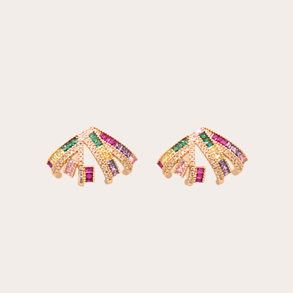 Joyful and radiant, these golden studs burst with a constellation of colorful crystals, catching the light from every angle. Their playful sparkle adds a cheerful pop to any outfit.  Perfect for bright days, festive nights, or whenever your look needs a little extra magic.
